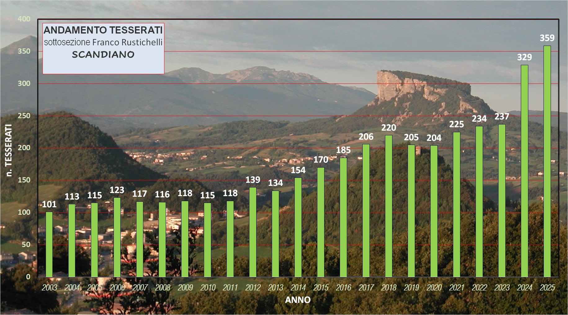La sottosezione del CAI di Scandiano è nata a metà degli anni '80, grazie all'impegno di un ristretto gruppo di amanti della montagna, dedicata a Franco Rustichelli, noto alpinista scandianese caduto sul nostro Appennino.