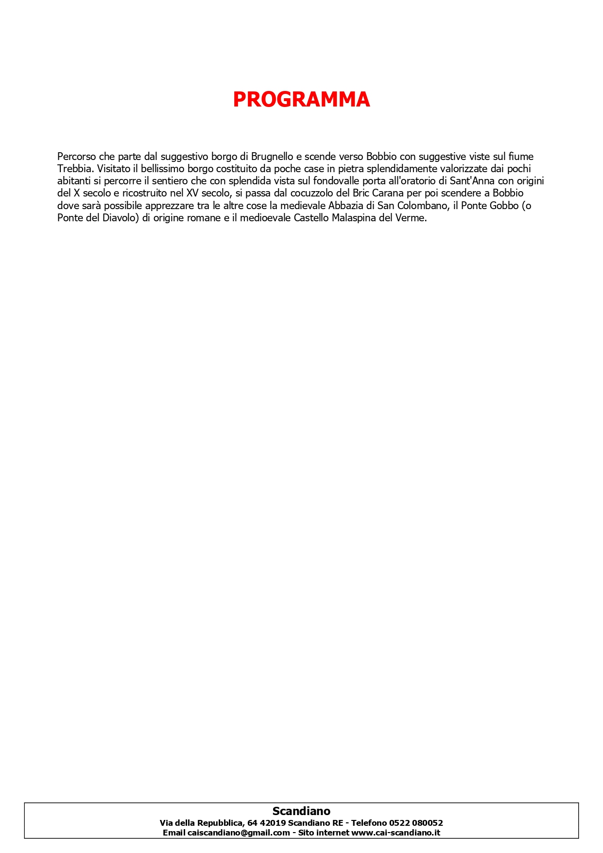 Brugnello Bobbio Alta Val Trebbia